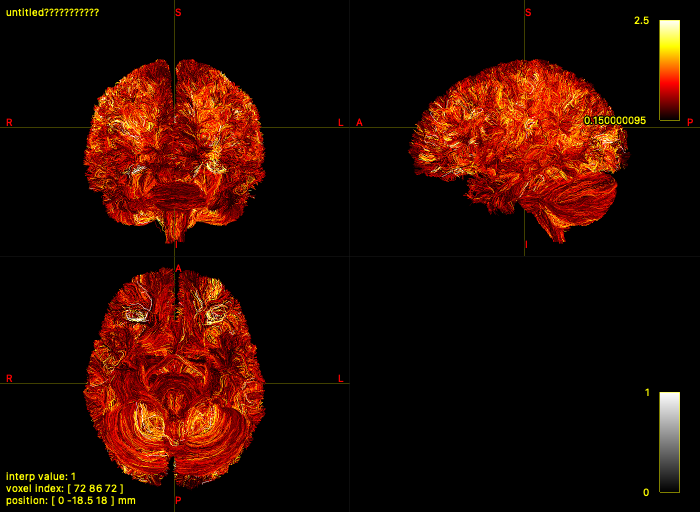 | `mrview` | Loads TRX directly; colour by group, dps, or dpv field from the GUI |